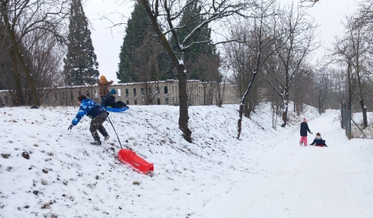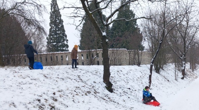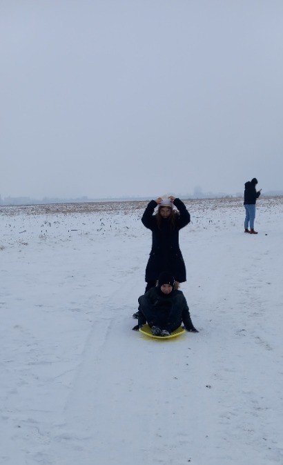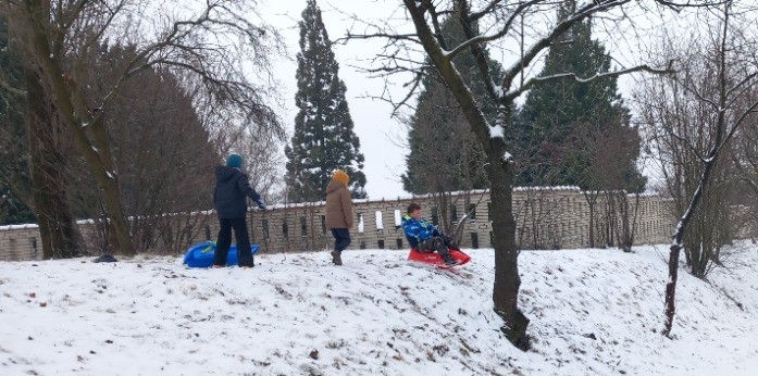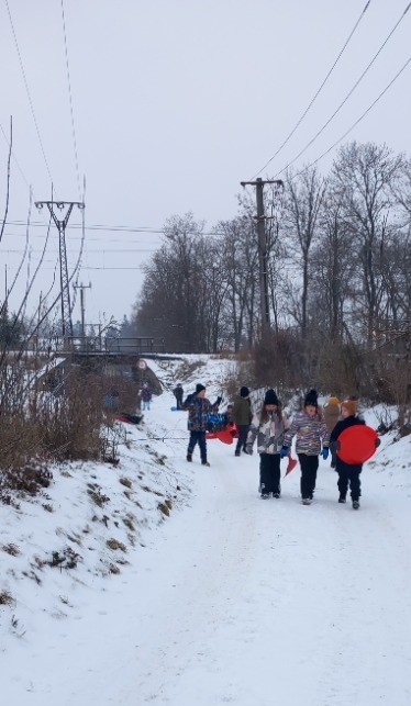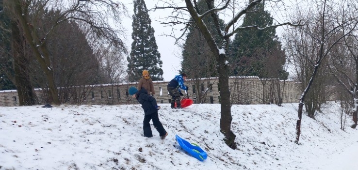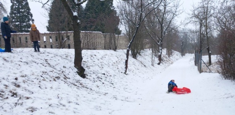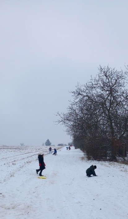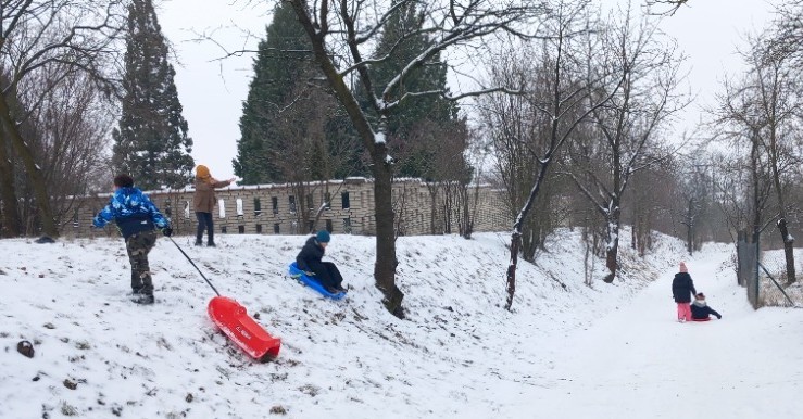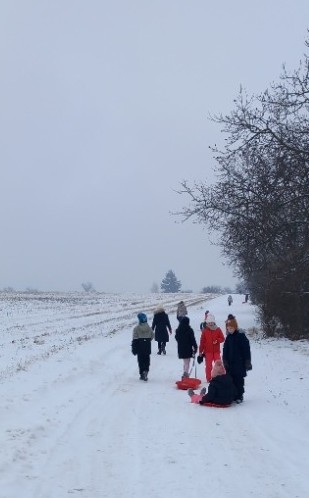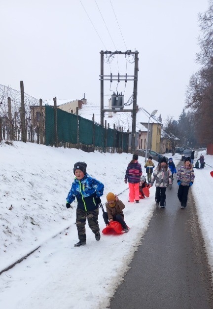 Využili jsme krásného zimního počasí a vydali jsme se s dětmi bobovat na zasněžený kopec.