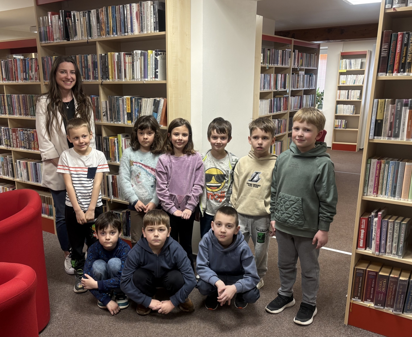 Při této příležitosti jsme navštívili místní knihovnu, kde na nás čekalo milé přivítání a zajímavé povídání o knihách. Děti si prohlédly různé knížky, dozvěděly se, jak knihovna funguje.