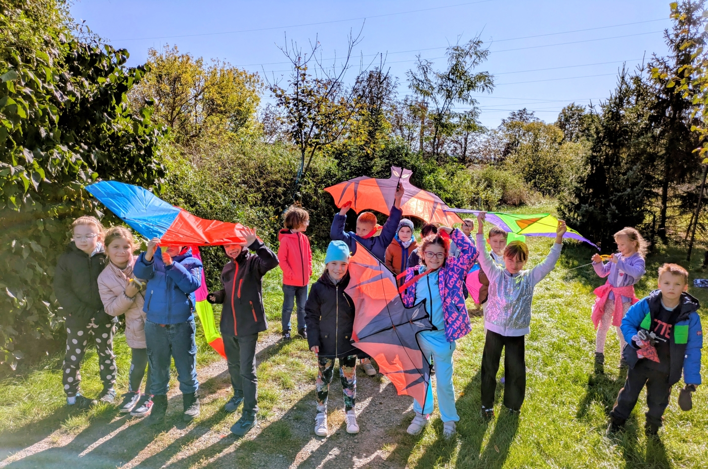 První a páté oddělení školní družiny se vydalo na místní pole pouštět draky. Moc se nám to vydařilo.