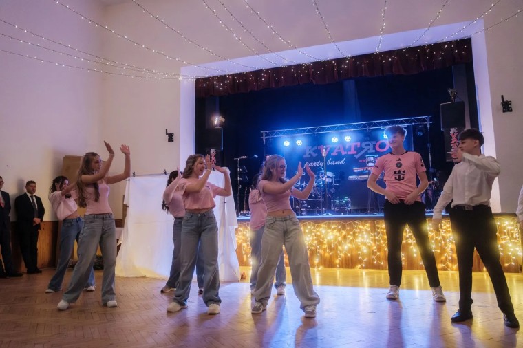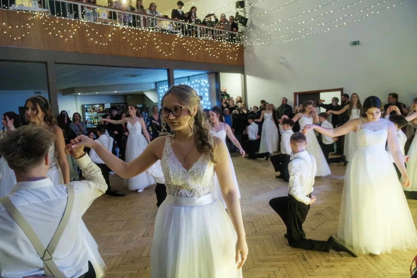 Očekávané vystoupení mladých tanečníků z 9. tříd naší základní školy nadchlo všechny přítomné. Žáci a žákyně, kteří se na předtančení připravovali již od října, zaujali nejen po stránce vizuální, ale hlavně tanečním vystoupením, ve kterém se propojil klasický valčík s moderní hudbou – skladbou od Christiny Perri A Thousand Years. Pod vedením paní učitelky Ivany Drlíkové se dvanácti párům podařilo vytvořit povedenou choreografii.