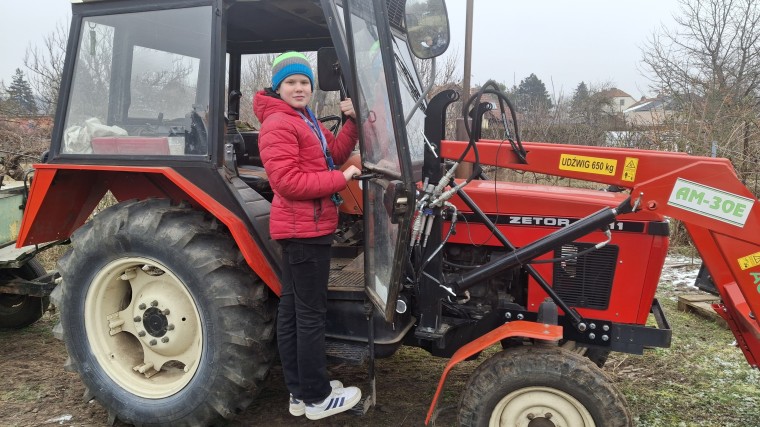 Žáci si mohli prohlédnout, pohladit a někteří i osedlat koně a dozvědět se mnoho zajímavých informací o jejich chovu, péči o ně a využití pro práci i zábavu. Kromě králíků a slepic bylo milým překvapením i mnoho zpěvných, okrasných i užitkových ptáků jako andulky, kanárci, papoušci a holubi. Veselým zpestřením byla i návštěva dvou skvěle vycvičených psů. Zvláště chlapce zaujala možnost posadit se za volant traktoru, což hojně využili. Chtěli bychom velmi poděkovat panu Dobrovolnému za čas, který nám věnoval a jeho ochotu a nadšení s jakým nám o svých zvířatech povídal.